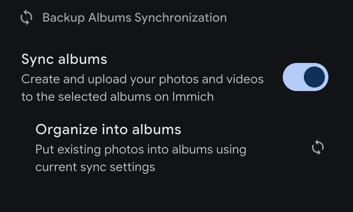 User-Specific Sync: Album synchronization is unique to each server user and does not sync between different users or partners.