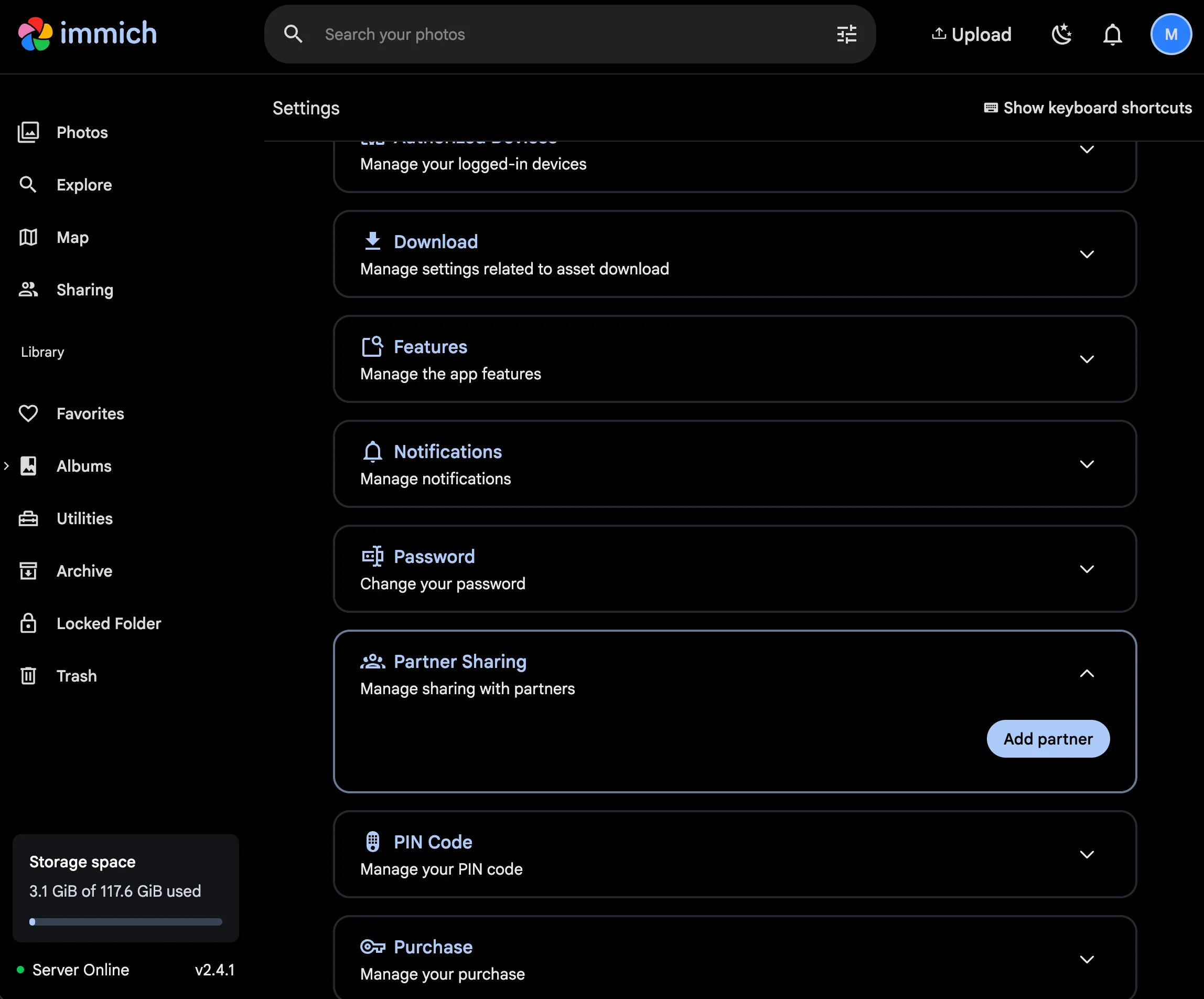 - Partner sharing may result in displaying duplicate assets on the main timeline, as duplicates are only detected on a per-user basis.